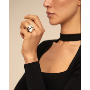 Anello unisex a forma di spirale e con finitura irregolare. È fatto di una unica lega di metalli placcati argento Sterling. La fattura artigianale realizzata in Spagna rende questo anello un gioiello unico.
