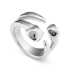 Anello della collezione Uno de 50 Loved Connected da donna. Colore: argento. L'anello aperto è in lega metallica preziosa rivestita in argento 15 micron caratterizzato da un design originale composto da due elementi alternati . Articolo realizzato in Spagna in maniera interamente artigianale.