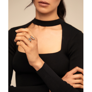 Questo anello di UNOde50 possiede un design originale, con una sottile fenditura e il logo inciso lungo il modello. È prodotto in Spagna utilizzando una lega di metalli placcati argento Sterling e in modo completamente artigianale.