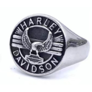 Presenta un classico design a sigillo con il logo iconico di Harley-Davidson, che include l'aquila e il testo circolare "HARLEY DAVIDSON".