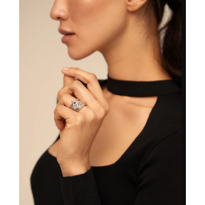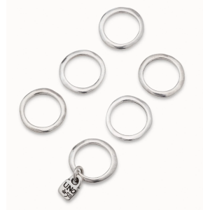 Questo iconico anello è un gioiello multiplo, formato da sei elementi e un mini-charm con il simbolico lucchetto del marchio. È un classico di UNOde50, con finitura irregolare e prodotto a mano utilizzando una lega unica di metalli placcati argento Sterling. Prodotto in Spagna in modo artigianale al 100%.