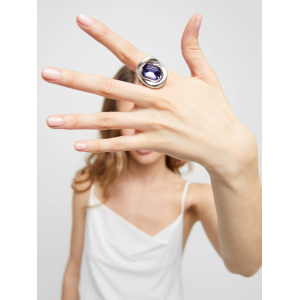 Anello placcato argento Sterling con cristallo sfaccettato viola al centro. Prodotto in Spagna con un processo artigianale al 100%.È arrivato il momento di affidarti al tuo istinto e di puntare sui gioielli che hai sempre immaginato ma non hai mai osato indossare. Punta sulle maglie e, se vuoi, osa anche ad andare oltre. Scopri la collezione Ser valiente.