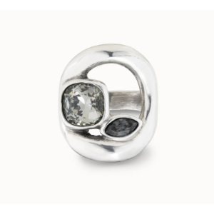 Anello placcato argento Sterling della collezione Grateful, composto da un grande ovale centrale con due cristalli sfaccettati di colore grigio-verde e grigio-argento. Questi gioielli sono stati realizzati a mano in Spagna secondo un processo meticoloso. La Collezione Grateful simboleggia una delle emozioni più belle che si possano provare, la gratitudine. Il concentrarsi sulle cose belle della vita ed essere grati per ciò che si ha. Rendersi conto e apprezzare cose che spesso vengono date per scontate.
