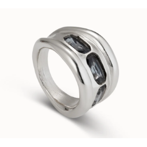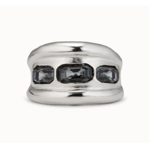 Anello placcato argento Sterling con tre cristalli sfaccettati grigi. La fattura artigianale realizzata in Spagna rende questo pezzo un gioiello unico.