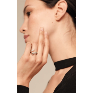 Anello con design a forma di chiodo a spirale aperta. Il suo effetto unico si ottiene grazie alla fattura artigianale con una lega di metalli placcati argento Sterling.