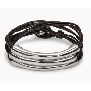 Bracciale a tre giri in cuoio marrone e particolari placcati argento Sterling