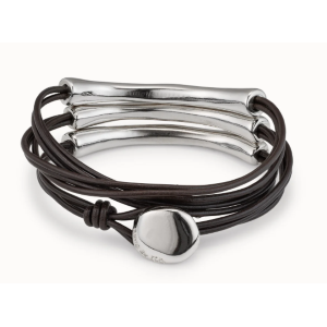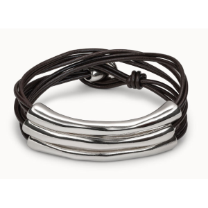 Bracciale a tre giri in cuoio marrone e particolari placcati argento Sterling