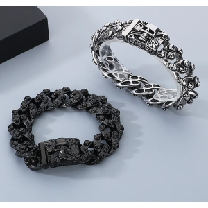 Bracciale da uomo in acciaio con teschio nero King of Darkness