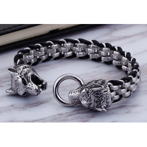 Bracciale da uomo in acciaio inossidabile 316L Wolf Head 23Cm