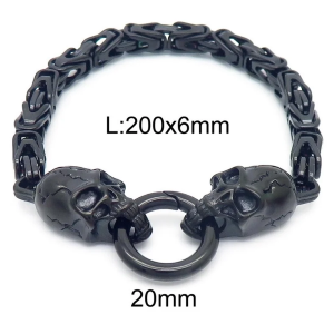 Bracciale da uomo in acciaio nero Double Skull Head