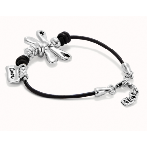Bracciale di cuoio con libellula placcato argento sterling