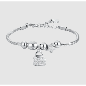 BRACCIALE DONNA IN ACCIAIO BORSA E CRISTALLI