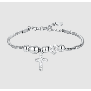 BRACCIALE DONNA IN ACCIAIO CROCE E CRISTALLI