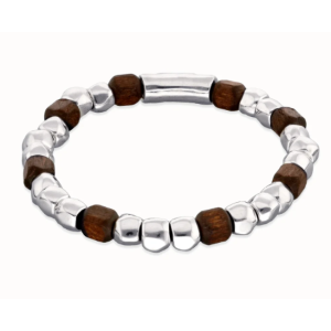 Bracciale elastico con perline in argento e legno