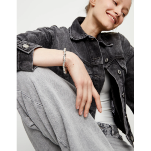 Bracciale elastico con perline in lega di metalli placcate argento Sterling. Gioielli, teschi e rock and roll. La collezione Ser imparable è pensata per far uscire il tuo lato punk, quello che preferisce chiedere scusa anziché chiedere il permesso, che avanza senza sosta dando sempre il massimo. Se il caos, il rumore, i suoni elettrici sono parte di te e vivi ogni giorno alzando il volume al massimo, Ser Imparable è la collezione che ti attende su un palcoscenico come una vera rockstar.