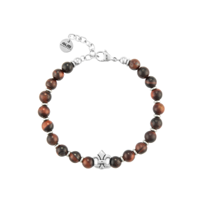 BRACCIALE IN ACCIAIO CON PIETRA NATURALE OCCHIO DI TIGRE ROSSO. 6MM