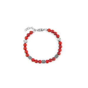 BRACCIALE IN ACCIAIO E PIETRA NATURALE: HOWLITE ROSSO.