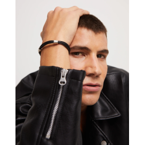 Bracciale multiplo in pelle con 2 circonferenze, placcato in argento. Prodotto in Spagna con un processo artigianale al 100%.Collezione di gioielli genderless che abbinano il cuoio a elementi a forma di tubo, placcati argento e con finitura organica. Scopri la collezione Ser natural.