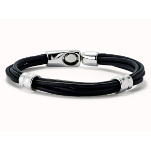 Bracciale in cuoio placcato argento con 2 circonferenze