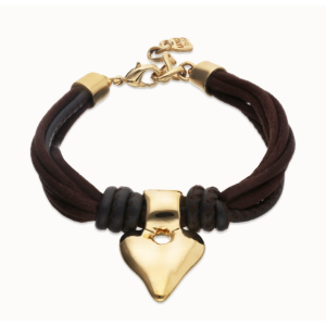 Bracciale in filo di seta e pelle marrone con cuore placcato oro 18k
