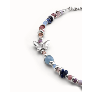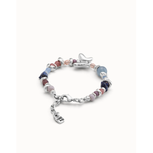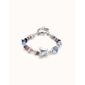 Bracciale placcato argento dal design a cristalli artigianali multicolore nelle tonalità blu e rosa e una farfalla centrale. È dotato di una elegante e comoda chiusura a bottone. Gioielli Made in Spain, realizzati completamente a mano, per ottenere una finitura dal design unico. La collezione Free, si ispira agli elementi della natura, sempre presenti nella storia di UNOde50.