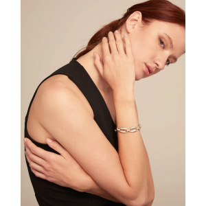 Bracciale in lega di metalli placcato argento Sterling con maglie ovali medie. Gioielli Made in Spain, realizzati completamente a mano, per ottenere una finitura dal design unico. Thankful,, una collezione che si ispira agli elementi della natura, sempre presenti nella storia di UNOde50. Sentire una profonda gratitudine per la rinascita e la prosperità della vita attraverso gli elementi del mare. Pezzi a forma di conchiglie marine che, unite fra loro, danno vita a collane, orecchini e anelli. Gioielli che proteggono la personalità.
