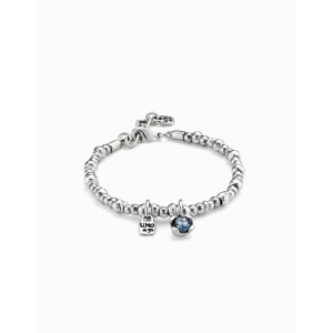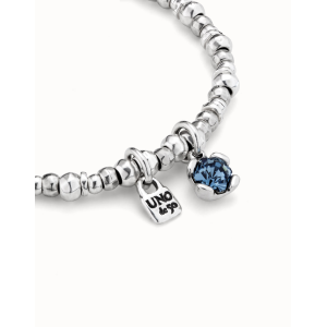 Bracciale placcato argento Sterling formato da un assortimento di sfere e due charms: un cristallo sfaccettato blu e l’iconico lucchetto di UNOde50. È dotato di chiusura a moschettone e catenina regolabile che permette di regolarlo sulla misura desiderata. Gioielli Made in Spain, realizzati completamente a mano, per ottenere una finitura dal design unico. La collezione Charismatic, rappresenta la capacità di attrarre, affascinare e influenzare ciò che ci circonda, cosa che si può ottenere solo in modo naturale.