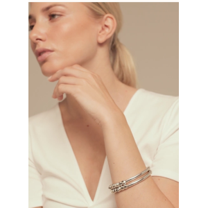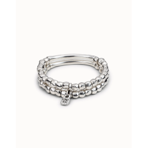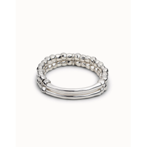 Bracciale doppio di perline e due elementi tubolari di metallo placcato argento. Caratteristico di UNOde50, realizzato in Spagna in modo completamente artigianale.