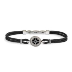 Bracciale con cordino in poliestere con centrale con rosa dei venti con smalto, al centro un cristallo bianco. Sul retro incisa la scritta "FOLLOW YOUR STAR", una rosa dei venti e il logo Marlù. Lunghezza totale 21 cm, regolabile da 21 a 19,5 cm tramite chiusura a scatto removibile.