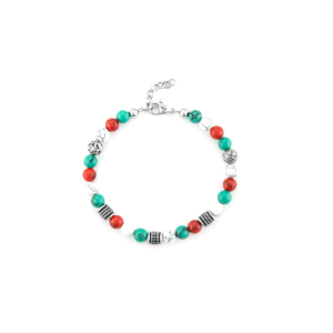 BRACCIALE IN ACCIAIO HOWLITE VERDE, ROSSO E BIANCO.