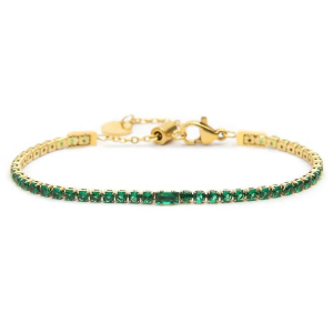 Bracciale con catena tennis con cubic zirconia 2,50 mm, con al centro un cubic zirconia taglio baguette. Lunghezza totale 19 cm regolabile tramite cursore da 19 cm a 15 cm. Chiusura a moschettone. Marlù logo tag presente all' estremità.
