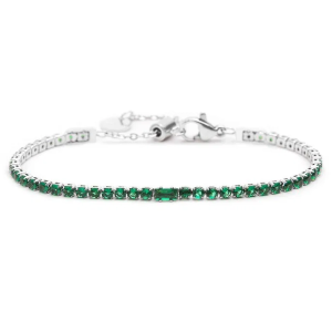 Bracciale con catena tennis con cubic zirconia 2,50 mm, con al centro un cubic zirconia taglio baguette. Lunghezza totale 19 cm regolabile tramite cursore da 19 cm a 15 cm. Chiusura a moschettone. Marlù logo tag presente all' estremità.