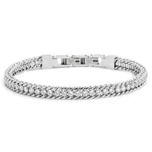 Bracciale tennis con spessore 3 mm con cubic zirconia nella parte centrale e con catena grumetta sui lati. Collezione: SPK01