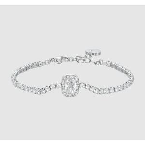 Bracciale Donna tennis in acciaio con elemento con cristalli bianchi e zircone bianco centrale. Lunghezza: 16 + 3 cm. Misura elemento: 8,5 x 11 mm. Misura cristalli tennis: 2,5 mm. Misura cristalli: 1,8 mm. Misura zircone: 5 x 7 mm. Questo raffinato bracciale tennis da donna in acciaio è il perfetto connubio tra eleganza e luminosità. La sua sottile fila di cristalli bianchi scintillanti dona un effetto di luce che impreziosisce qualsiasi look, mentre il zircone bianco centrale aggiunge un tocco di raffinatezza, diventando il punto focale di questo gioiello. Ideale per chi ama uno stile sofisticato e moderno, perfetto per tutte le occasioni, dalla quotidianità agli eventi speciali.