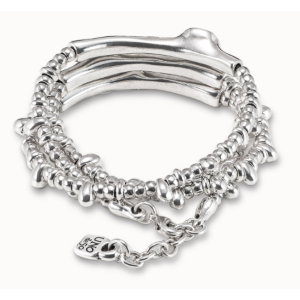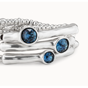Bracciale placcato argento Sterling a tre giri formato da svariati elementi e che comprende cristalli SWAROVSKI® di colore blu indian safire. Un pezzo prodotto a mano in Spagna da UNOde50 in modo artigianale al 100%.