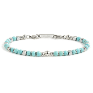 Bracciale in acciaio con pietra composita o nera o azzurro turchese o blu lapis con ematite sfacettata ed elementi di acciaio. Lunghezza 21 cm regolabile da 19 a 21 cm tramite Marlù tag removibile.