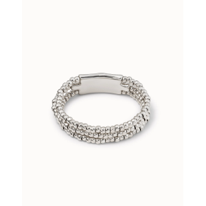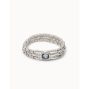 Il bracciale Infinite è formato da tre fili di perle, impreziosite da una decorazione centrale di tubuli fusi con un cristallo grigio. Questo bracciale color metallo è realizzato in Spagna completamente a mano, in lega di metalli placcati argento. Abbina questo bracciale agli altri pezzi della collezione Fearless.