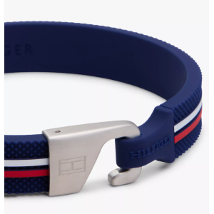 Braccialetto da uomo Tommy Hilfiger. Questo braccialetto con cinghia in silicone vanta la nostra caratteristica riga rossa, bianca e blu con una chiusura a gancio in acciaio inox, rendendolo una vera aggiunta alla Tommy per il tuo guardaroba casual.