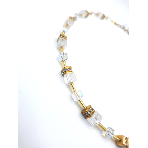 La collana GeoCUBE® Iconic Nature è un gioiello realizzato a mano con cristallo di rocca cracked e scintillanti cristalli Swarovski®. Questo capolavoro di gioielleria unisce le proprietà rilassanti del cristallo di rocca alle tonalità oro e cristallo: un gioiello elegante che celebra la bellezza della natura.
