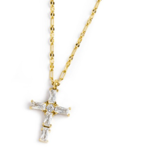 Collana croce pendente con cristalli baguette