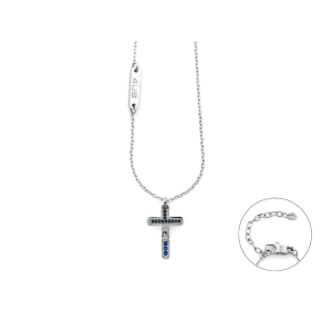 COLLANA CROCE SNODATA ZIRCONI NERI E BLU