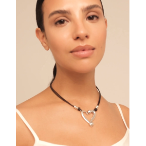Collana di cuoio placcata argento Sterling con un elemento centrale a forma di cuore, ispirato all'iconico chiodo di Unode50. Questo pezzo è stato disegnato e realizzato a mano in Spagna. È dotata di chiusura a moschettone che permette di regolarla sulla misura desiderata. La collezione Loved è rappresentata dall'iconico cuore chiodato. Una decontestualizzazione contemporanea di entrambi i simboli che ha più senso che mai.