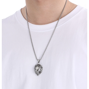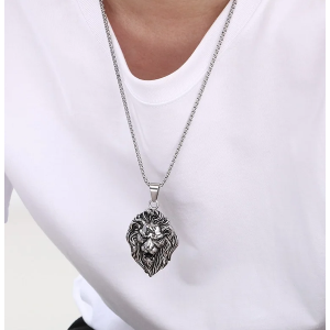 Collana da uomo con pendente a forma di testa di leone in acciaio inossidabile 304