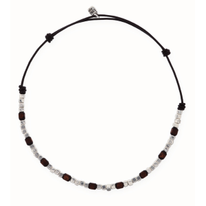 Collana in cuoio che combina perline placcate argento Sterling e perline di legno. Gioielli, teschi e rock and roll. La collezione Ser imparable è pensata per far uscire il tuo lato punk, quello che preferisce chiedere scusa anziché chiedere il permesso, che avanza senza sosta dando sempre il massimo. Se il caos, il rumore, i suoni elettrici sono parte di te e vivi ogni giorno alzando il volume al massimo, Ser Imparable è la collezione che ti attende su un palcoscenico come una vera rockstar.