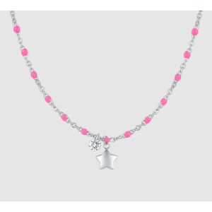 COLLANA DONNA IN ACCIAIO CON STELLA, CRTISTALLO E PIETRE CON SMALTO FUCSIA