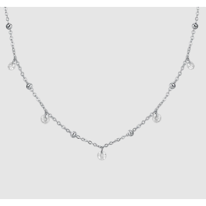 Collana donna in acciaio con zirconi bianchi Lunghezza: 85 + 5 cm Diametro zircone: 4 mm Diametro sfere: 3 mm