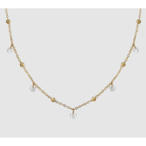 Collana donna in acciaio IP gold con zirconi bianchi Lunghezza: 85 + 5 cm Diametro zircone: 4 mm Diametro sfere: 3 mm
