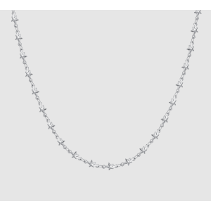 Collana Donna in acciaio con stelle. Lunghezza: 40 + 5 cm. Misura stella: 5 x 10 mm. Il design presenta raffinate stelle, simbolo di sogni, speranza e guida, che da sempre rappresentano luce nelle tenebre e l'ispirazione a raggiungere traguardi elevati. Questa collana non solo aggiunge un tocco di brillantezza al tuo look, ma porta con sé un profondo significato simbolico di orientamento e desiderio.