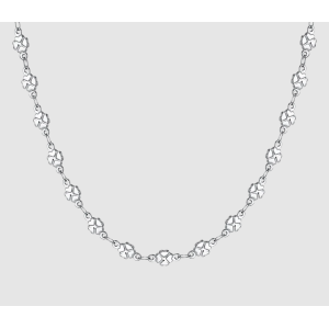 Collana Donna in acciaio con quadrifogli. Lunghezza: 40 + 5 cm. Misura quadrifoglio: 5 x 10 mm. Esprimi il tuo stile con questa elegante collana da donna in acciaio inossidabile decorata con raffinati quadrifogli, simbolo di fortuna e positività. Il design semplice ma sofisticato rende questa collana un accessorio versatile, perfetto per essere indossato ogni giorno o in occasioni speciali.