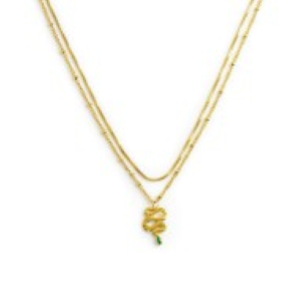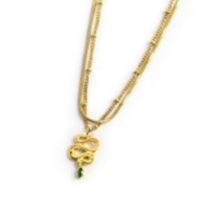 Collana doppia catena snake quadrata con serpente pendente